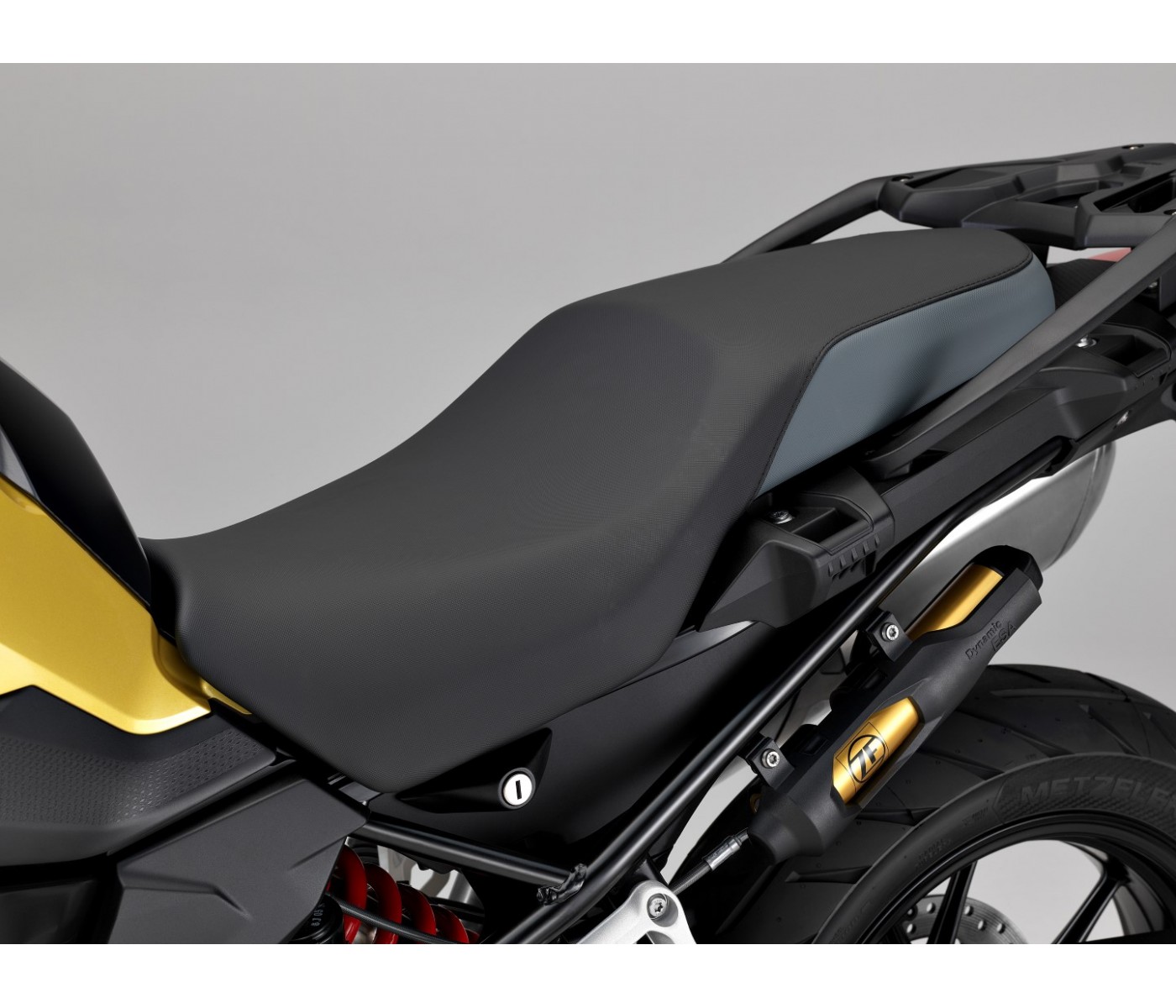 Υπάρχει κάτι για κάθε τύπο αναβάτη: μπορείς να προσαρμόσεις την F 750 GS στις ανάγκες σου - διατίθενται πολλές σέλες με διαφορετικά ύψη καθίσματος. Υπάρχει επίσης χαμηλή διπλή σέλα και σέλα για ακόμη περισσότερη άνεση και αν το επιθυμείς, η μοτοσικλέτα μπορεί να χαμηλώσει περισσότερο.
