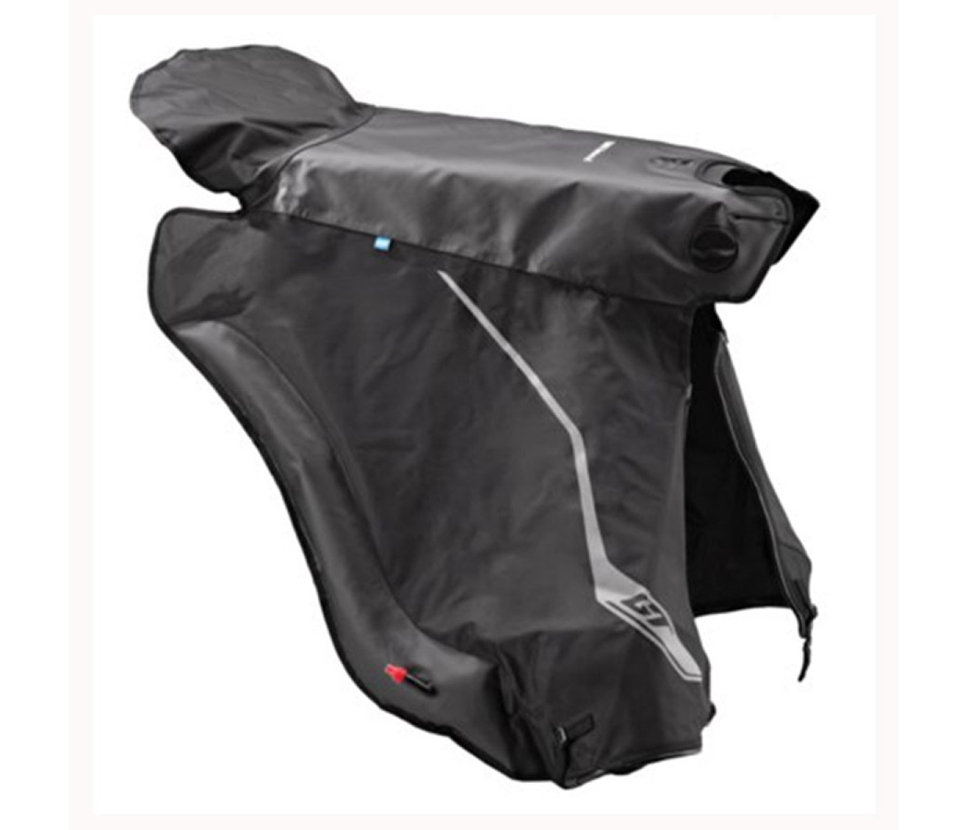 - Εφαρμοστό, αδιάβροχο προστατευτικό κάλυμμα, που αποτελεί άριστη προστασία από τον αέρα, τις καιρικές συνθήκες και τη ρύπανση για τα πόδια και το κάτω μέρος του σώματος του οδηγού