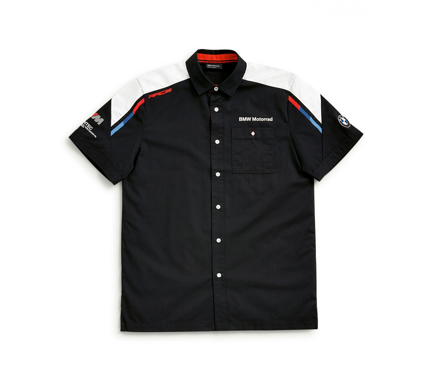 Το κοντομάνικο ανδρικό πουκάμισο Motorsport από βαμβάκι και πολυεστέρα αποτελεί το απόλυτο ρούχο για όλους τους οπαδούς των αγώνων μηχανοκίνητου αθλητισμού. Η ξεχωριστή θήκη για στιλό της τσέπης στήθους αντιπροσωπεύει τη λειτουργικότητα του μοντέρνου πουκάμισου σε μαύρο χρώμα, με πατιλέτα με Branding BMW Motorrad και διακοσμητικά στοιχεία στα χρώματα BMW Motorsport λευκό, κόκκινο και μπλε.