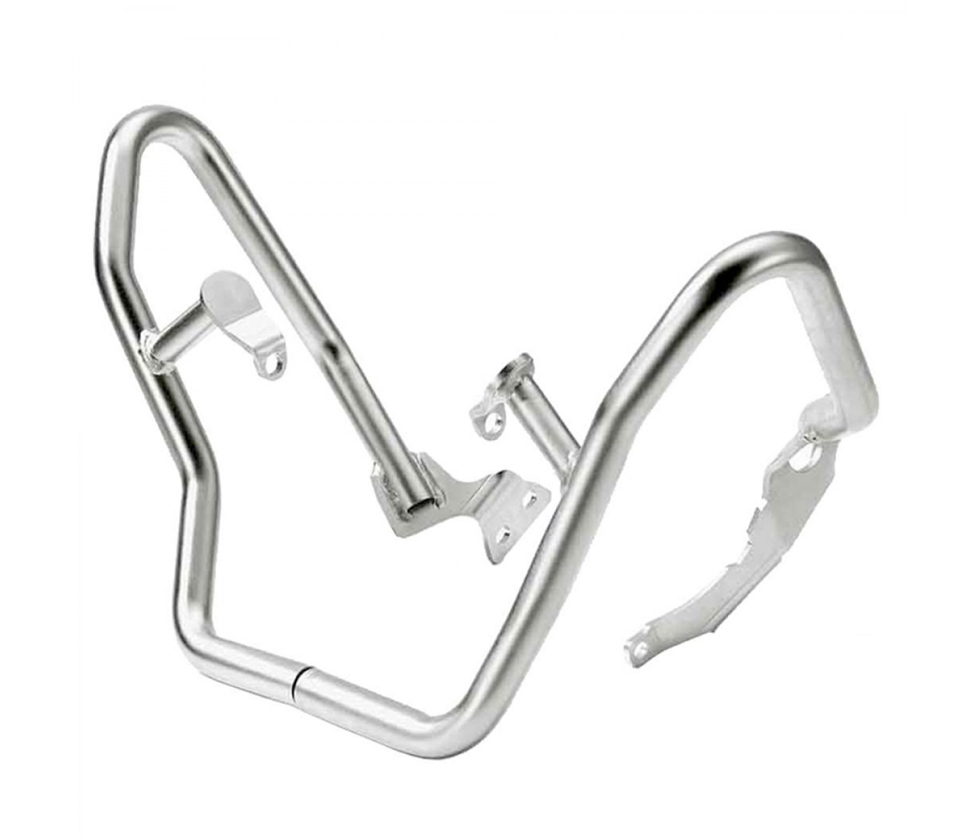 Οι ανθεκτικές μπάρες προστασίας κινητήρα από γυαλισμένο ανοξείδωτο χάλυβα προστατεύουν τη μοτοσικλέτα αξιόπιστα από τυχόν ζημιά, χωρίς να περιορίζουν το όριο κλίσης. Η ανθεκτική κατασκευή σωλήνα αντέχει ακόμα και δυνατά χτυπήματα και μπορεί να αποτρέψει μεγάλης έκτασης ζημιές από πτώση κατά την οδήγηση εκτός δρόμου και στην άσφαλτο.