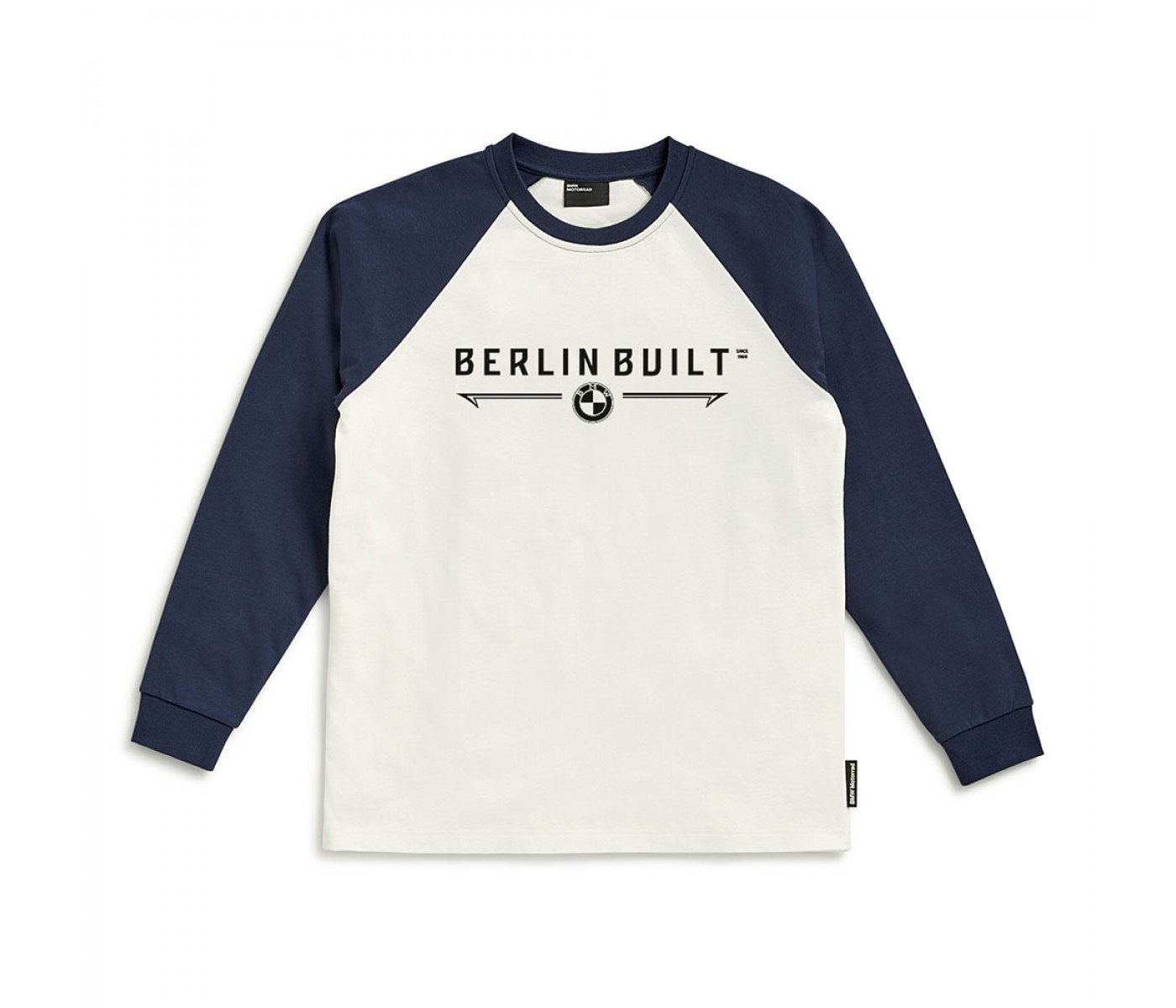 Ένας άριστος συνδυασμός: Η μακρυμάνικη μπλούζα Berlin Built ξεκαθαρίζει που κατασκευάζονται οι μοτοσικλέτες BMW. Τα χρώματα λευκό και μπλε αντιπροσωπεύουν ταυτόχρονα τη βαυαρική δεξαμενή σκέψης στο Μόναχο. Η μακρυμάνικη μπλούζα με στρογγυλή λαιμόκοψη αποτελείται από καθαρό βαμβάκι και φέρει στο στήθος την εντυπωσιακή διακοσμητική επιγραφή με το λογότυπο BMW.