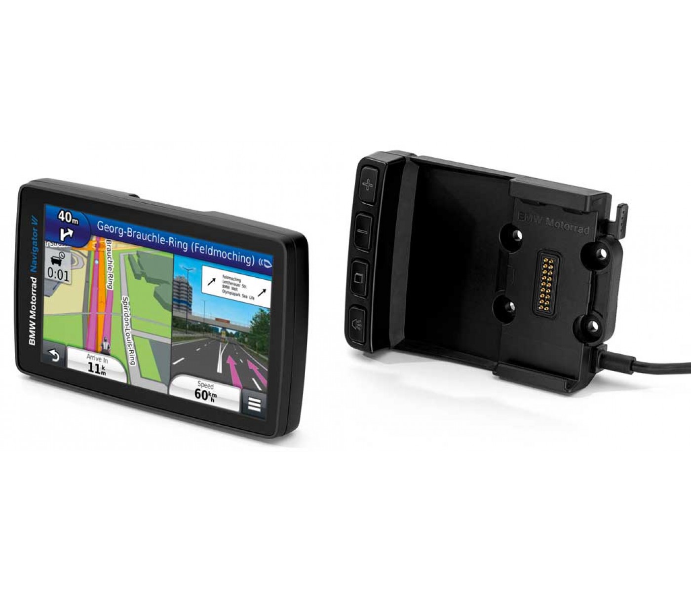 Το νέο Navigator VI είναι ο συνοδός σας στα ταξίδια των ονείρων σας. Η μεγάλη οθόνη 5 ιντσών του, σας δείχνει τον δρόμο προς την οδηγική απόλαυση χωρίς όρια. Το κυκλικό φίλτρο πόλωσης (CPOL) της οθόνης ελαχιστοποιεί τις ανακλάσεις, βελτιώνει την αντίθεση και εξασφαλίζει έτσι ιδανική δυνατότητα ανάγνωσης ακόμη και σε άμεση έκθεση στον ήλιο. Με την επιλογή σχεδιασμού "Δρόμοι με στροφές", το νέο χαρακτηριστικό λειτουργίας "Αποφυγή μεγάλων επαρχιακών δρόμων" και τη λειτουργία "Round Trip" για διαδρομές μετ' επιστροφής με καθορισμένη διάρκεια, απόσταση ή ενδιάμεσο προορισμό γνωρίζετε νέους κόσμους. Για άριστη υποστήριξη, οι αναγγελίες πλοήγησης με "Natural Guidance" παρέχουν μία ακριβή περιγραφή του περιβάλλοντος χώρου. Στις διαδρομές σας, διαμορφώστε εσείς τη μουσική σας συνοδεία: Χάρη στην τεχνολογία Bluetooth και το νέο χαρακτηριστικό "streaming λειτουργίας" μπορείτε να ακούτε τα κομμάτια που έχετε αποθηκεύσει στο smartphone σας. Γίνετε σκηνοθέτης και ελέγξτε συμβατές "Action Cams" απευθείας από το Navigator. Ο άνετος χειρισμός όλων των σημαντικών λειτουργιών στη διάρκεια της διαδρομής γίνεται αναλόγως του μοντέλου είτε μέσω του Mount Cradle 4 πλήκτρων είτε από το τιμόνι μέσω του Multi-Controller. Σε συνδυασμό με την προετοιμασία πλοήγησης διατίθενται περαιτέρω πρωτοποριακές λειτουργίες όπως οι σελίδες "Η μοτοσικλέτα μου" καθώς και προειδοποιητικά μηνύματα και μηνύματα κατάστασης. Με την προαιρετική εφαρμογή Garmin Smartphone Link για πληροφορίες κυκλοφοριακής συμφόρησης σε πραγματικό χρόνο και τις προγνώσεις καιρού είστε πάντα ενημερωμένοι. Για τα προεγκατεστημένα δεδομένα χάρτη λαμβάνετε δωρεάν ενημερώσεις για πάντα. Με την ευκαιρία: Με το προαιρετικό κιτ τοποθέτησης για επιβατικό όχημα, το Navigator VI αποτελεί και στο αυτοκίνητο τον ιδανικό συνοδό.