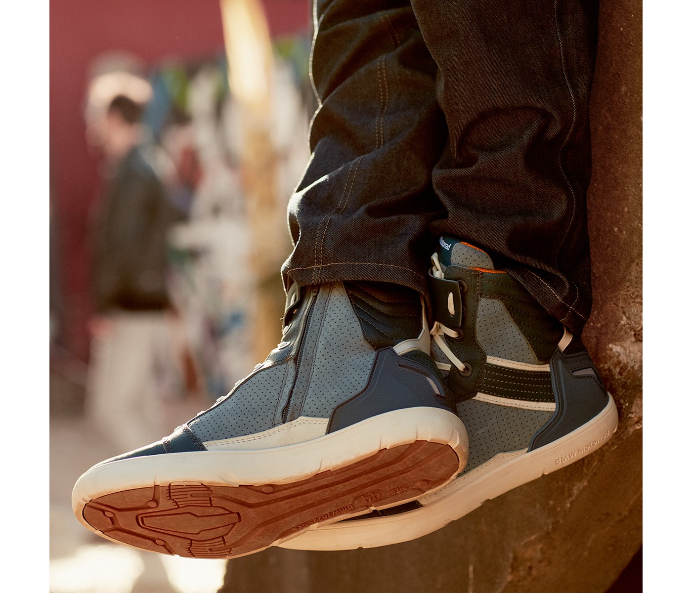 - Διαφοροποίηση σε σχέση με το BMW Motorrad Sneaker Dry: Όχι αδιάβροχο 100 % δέρμα, έτσι ιδιαίτερα διαπνέον