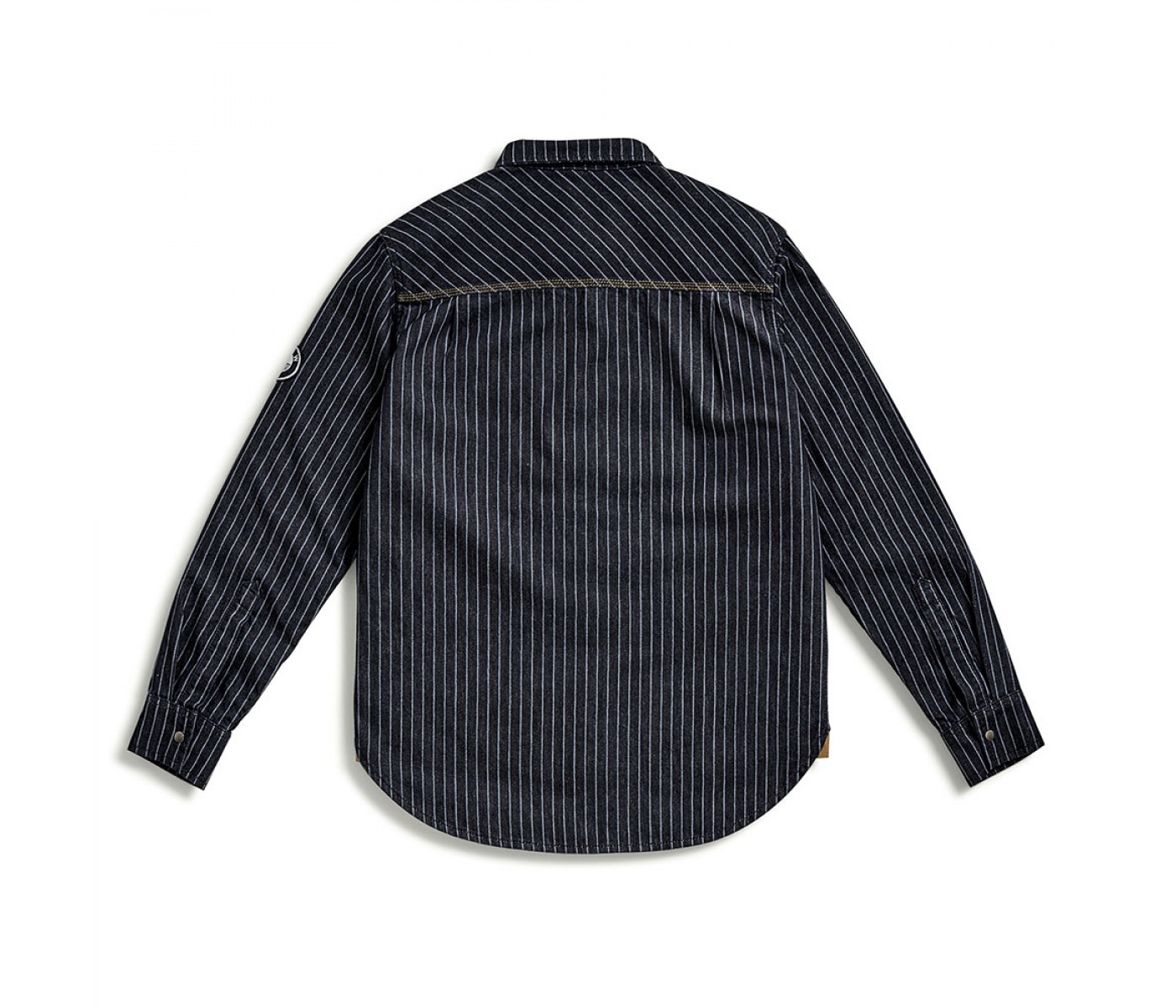- Πουκάμισο Denim με λεπτές ρίγες, στο σχέδιο των ρούχων εργασίας που χρησιμοποιούνταν στην Αμερική κατά τον 19ο αιώνα
