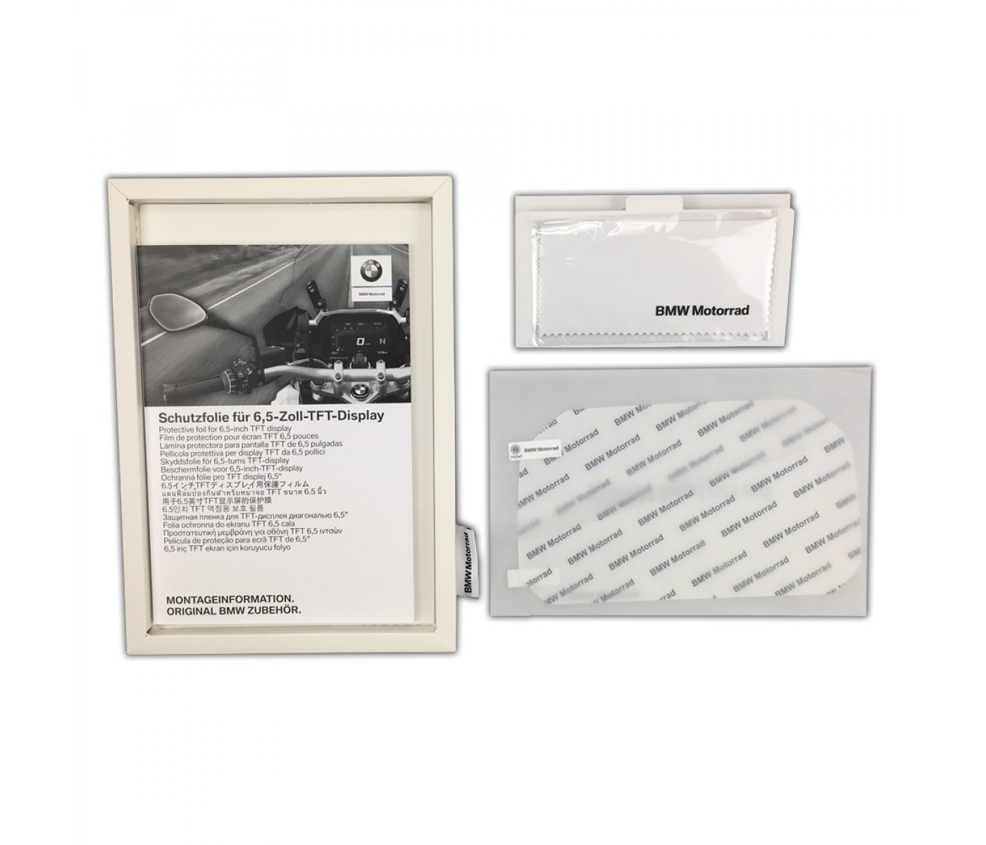 Η προστατευτική μεμβράνη προφυλάσσει αξιόπιστα την οθόνη TFT 6,5 ιντσών και εκτός δρόμου από ρύπους, χτυπήματα πέτρας και ζημιά. Το σκληρυμένο γυαλί διαθέτει αντιθαμβωτική και αντιανακλαστική επιφάνεια, με αποτέλεσμα η οθόνη TFT να μπορεί να διαβάζεται πολύ καλά και εκτός δρόμου. Με επιγραφή BMW Motorrad.