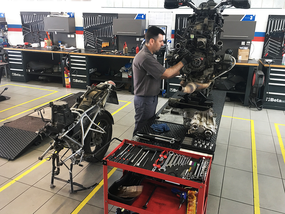 Διαθέτει σύγχρονο συνεργείο με τις αυστηρές προδιαγραφές της BMW Motorrad: