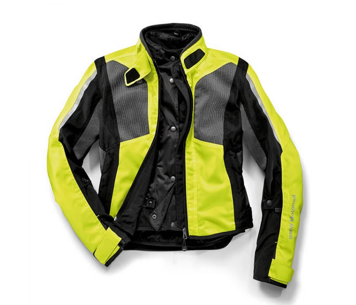 Με το μπουφάν AirShell είστε προετοιμασμένοι για κάθε καιρό. Χάρη στην αντιανεμική και αδιάβροχη, αλλά διαπνέουσα εσωτερική επένδυση από BMW Climate Membrane καθώς και το καπιτονέ, αφαιρούμενο θερμικό γιλέκο, αυτό το μπουφάν μπορεί να χρησιμοποιείται όλο το χρόνο. Ένα αίσθημα άνεσης για τις ζεστές μέρες του καλοκαιριού, ευχάριστη ζεστασιά και προστασία έναντι της βροχής για την πιο κρύα περίοδο του έτους - και χάρη στο χρωματισμό νέον πάντα με άριστη εμφάνιση στην οδική κυκλοφορία.