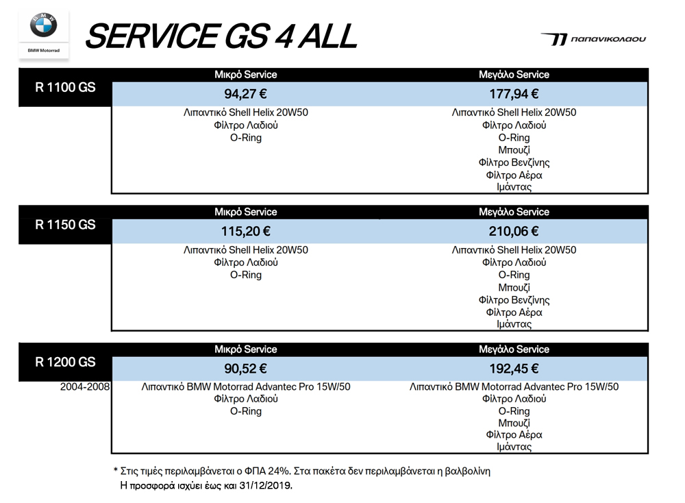Πακέτα Service GS 4 ALL για R 1100 GS, R 1150 GS & R 1200 GS