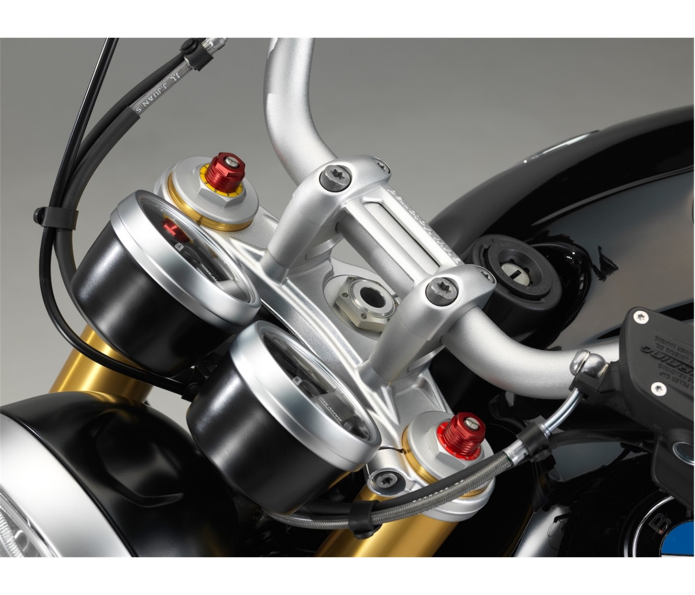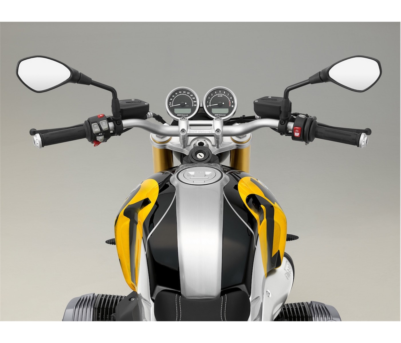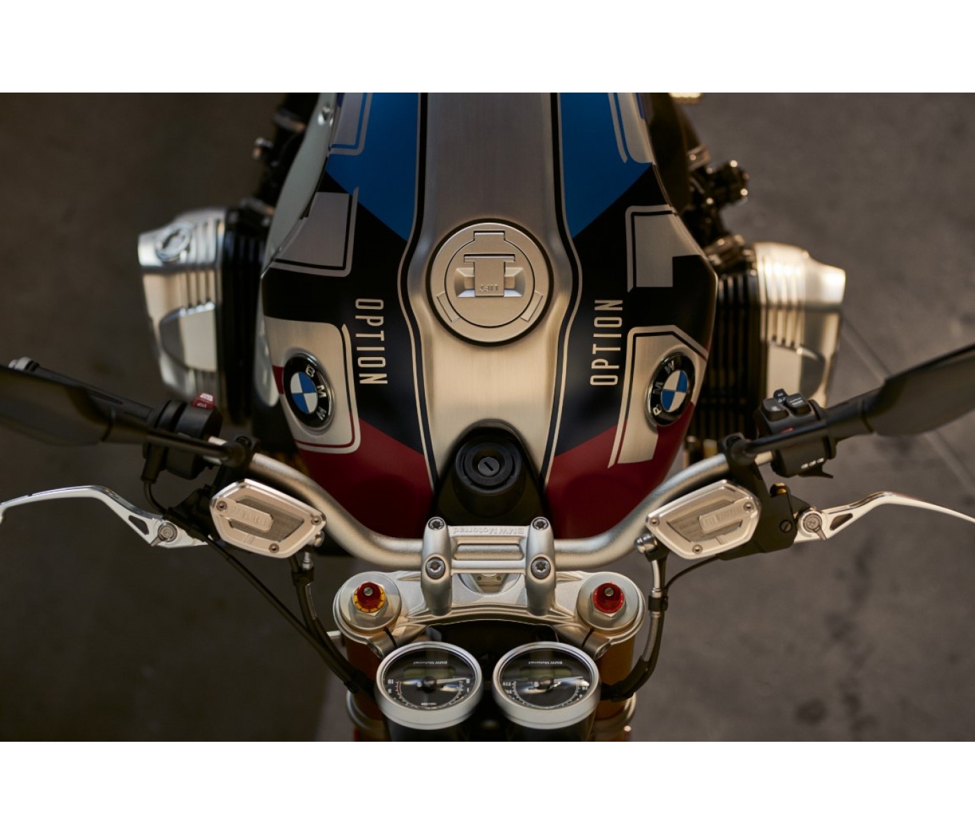 Από την αρχή, κατά την σχεδίαση της R nineT δόθηκε έμφαση στο βασικό χαρακτηριστικό της: τον υψηλό βαθμό δυνατοτήτων προσαρμογής. Αμέτρητες επαγγελματικές και προσωπικές τροποποιήσεις αποδεικνύουν τις δυνατότητες που έχει η R nineT. Τα προσαρμοζόμενα ηλεκτρονικά διευκολύνουν την εγκατάσταση ηλεκτρικών εξαρτημάτων. Σε αυτά προστίθεται και το καλά μελετημένο διαχωρίσιμο πλαίσιο. Το τελικό κομμάτι του πίσω πλαισίου μπορεί εύκολα να αποσυναρμολογηθεί: για μία λιτή και στιλάτη σόλο οδήγηση, ή για εναλλακτικές επιλογές σελών. Για να δώσεις μια νέα εμφάνιση στην R nineT είναι διαθέσιμα αρκετά βαμμένα εξαρτήματα, όπως και διάφορες επιλογές για το ρεζερβουάρ: αλουμινίου με ορατές ή κρυφές ραφές, και συνδυασμός με τη σέλα του βασικού εξοπλισμού. Είναι ακόμη εφικτό να αντικαταστήσεις τη σέλα του συνεπιβάτη με ένα κάλλυμα από αλουμίνιο (μονόσελο). Δύο ειδικοί χρωματικοί συνδυασμοί Black Storm metallic / Vintage και Blue Planet metallic / Aluminium είναι πλέον διαθέσιμοι. Τώρα, εκτός από το ρεζερβουάρ, η R nineT σου λαμβάνει αλουμινένιο κάλυμμα σέλας συνεπιβάτη και εμπρός τροχού στο χρώμα της επιλογής σου. Το ειδικό φινίρισμα Black Storm metallic / Vintage δίνει στη μοτοσικλέτα σου μία ξεχωριστή μεταχειρισμένη εμφάνιση λόγω του βουρτσίσματος που γίνεται με το χέρι. Ο HP sport σιγαστήρας που διατίθεται στα προαιρετικά αξεσουάρ μπορεί να τοποθετηθεί είτε ψηλά είτε χαμηλά: για μια ξεχωριστή εμφάνιση. Ο προαιρετικός εργοστασιακός εξοπλισμός είναι εξίσου εντυπωσιακός, όπως για παράδειγμα, τα θερμαινόμενα grips και τα LED φλας. Η R nineT όμως είναι έτοιμη για ακόμη περισσότερες επιλογές έκφρασης, όπως με τα νέα Κατεργασμένα αξεσουάρ - είτε πρόκειται για κάλυμμα κυλινδροκεφαλής, προβολέα ή κινητήρα. Με την R nineT, μπορείς όχι μόνο να απολαύσεις στο μέγιστο τη βόλτα σου, αλλά και να απογειώσεις τις δυνατότητες της μοτοσικλέτας σου.